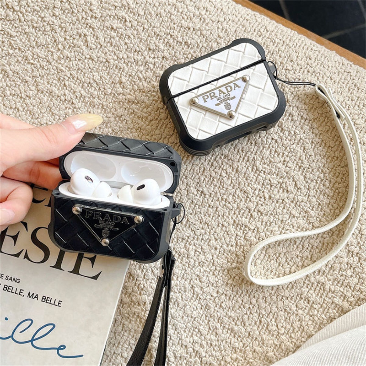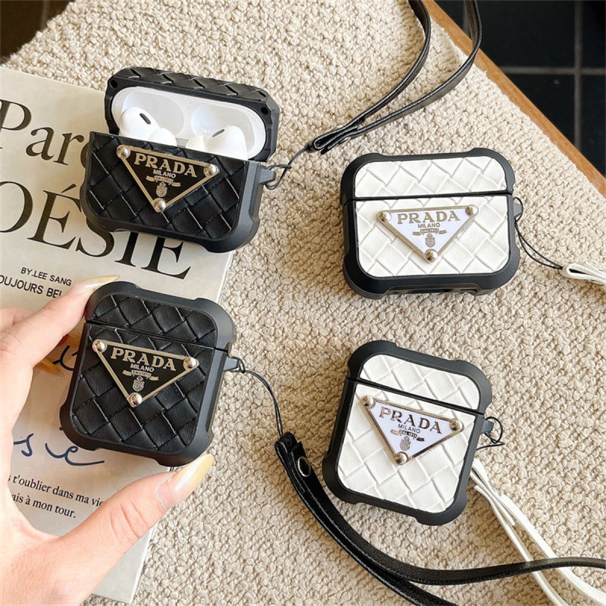 Prada Wireless Charging Case for AirPods4 pro pro2 3 2 AirPods4 Case Custodia Hulle Funda airpods Waterproof Case Shock Proof Protective Cover Wireless Charging Airpods4 pro 4 2 3 1 Earbuds Case Cover Skin Shell