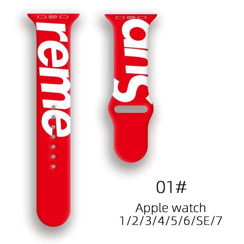 Supreme Leather Apple Watch Band for Series 1/2/3/4/5/6/7/8/UltraCustom Leather Watch BandStrap Replacement Sport Wristbands for iWatchLuxury Designer Classic Monogram Apple Watch Band