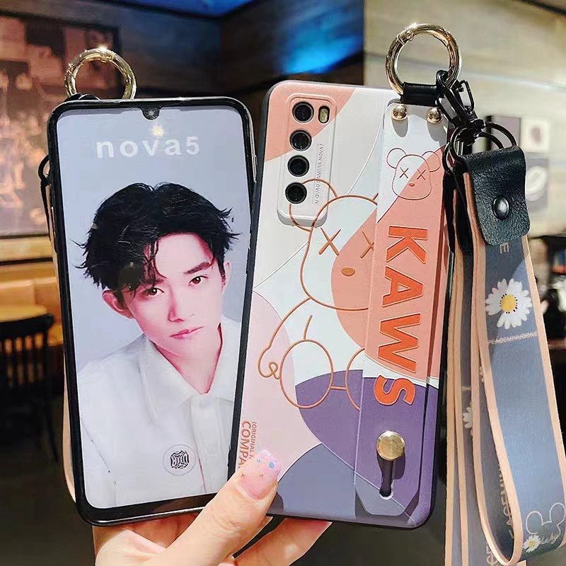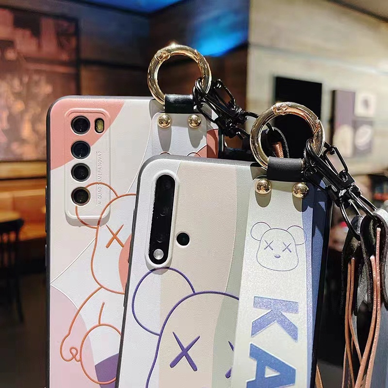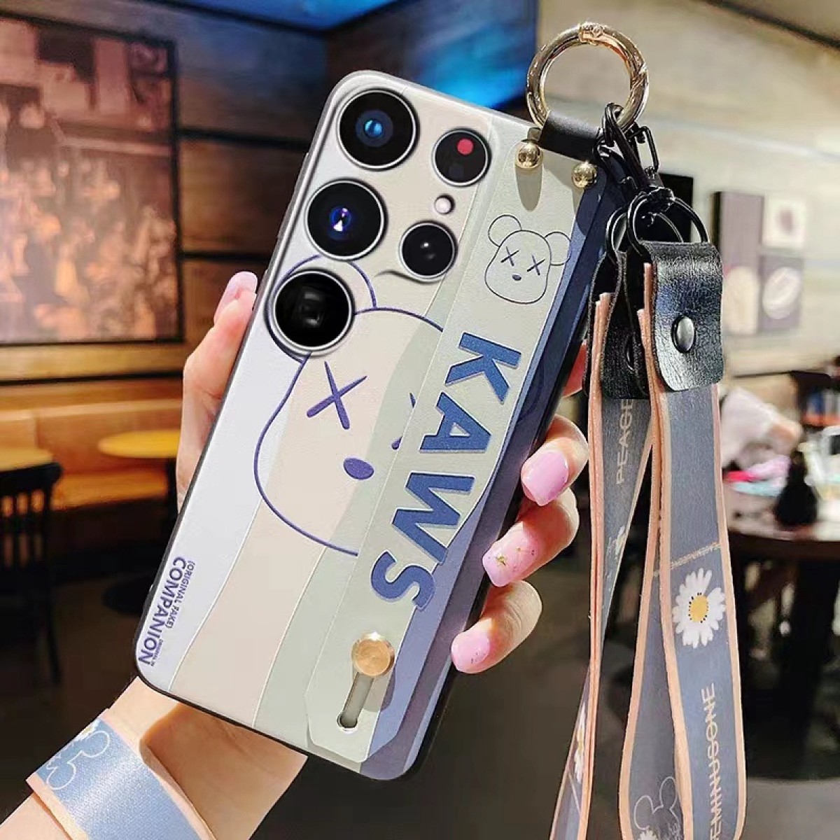 Kaws luxury bear strap handband stand ring monogram elegant hang case For Galaxy S23+Plus Ultra A54 5G S22 S21 cover