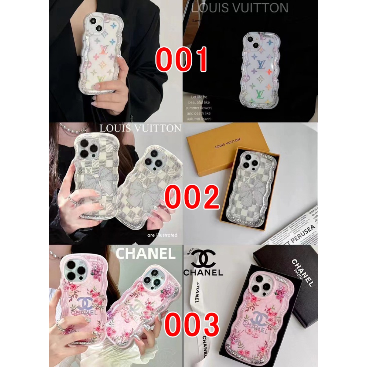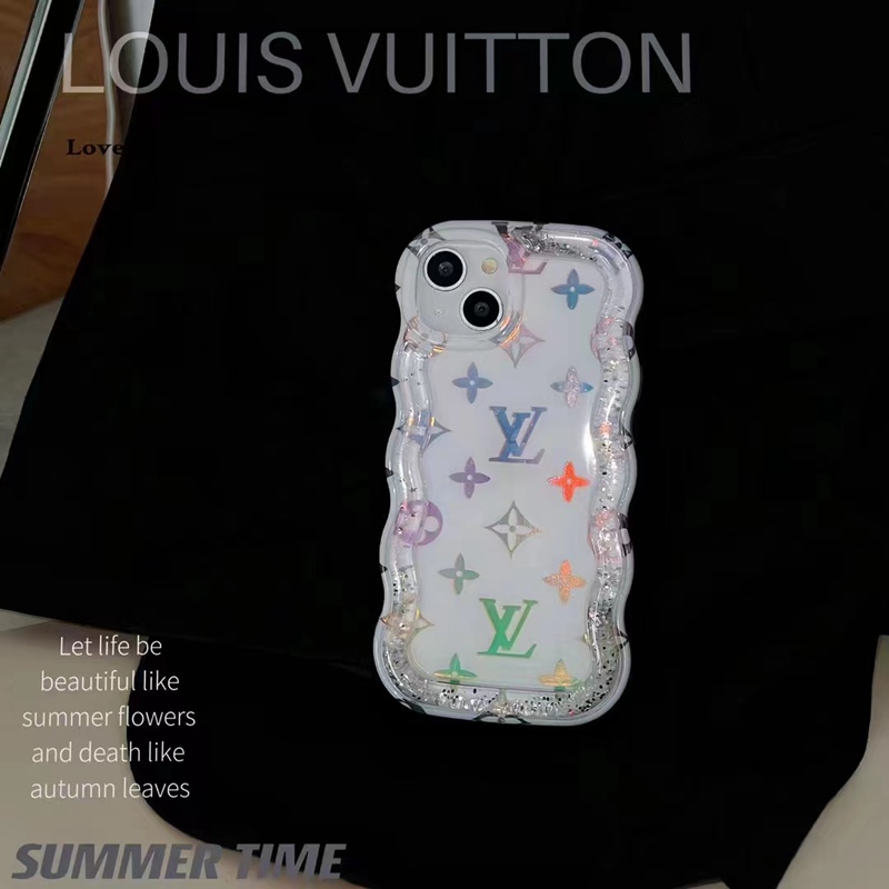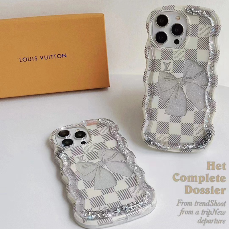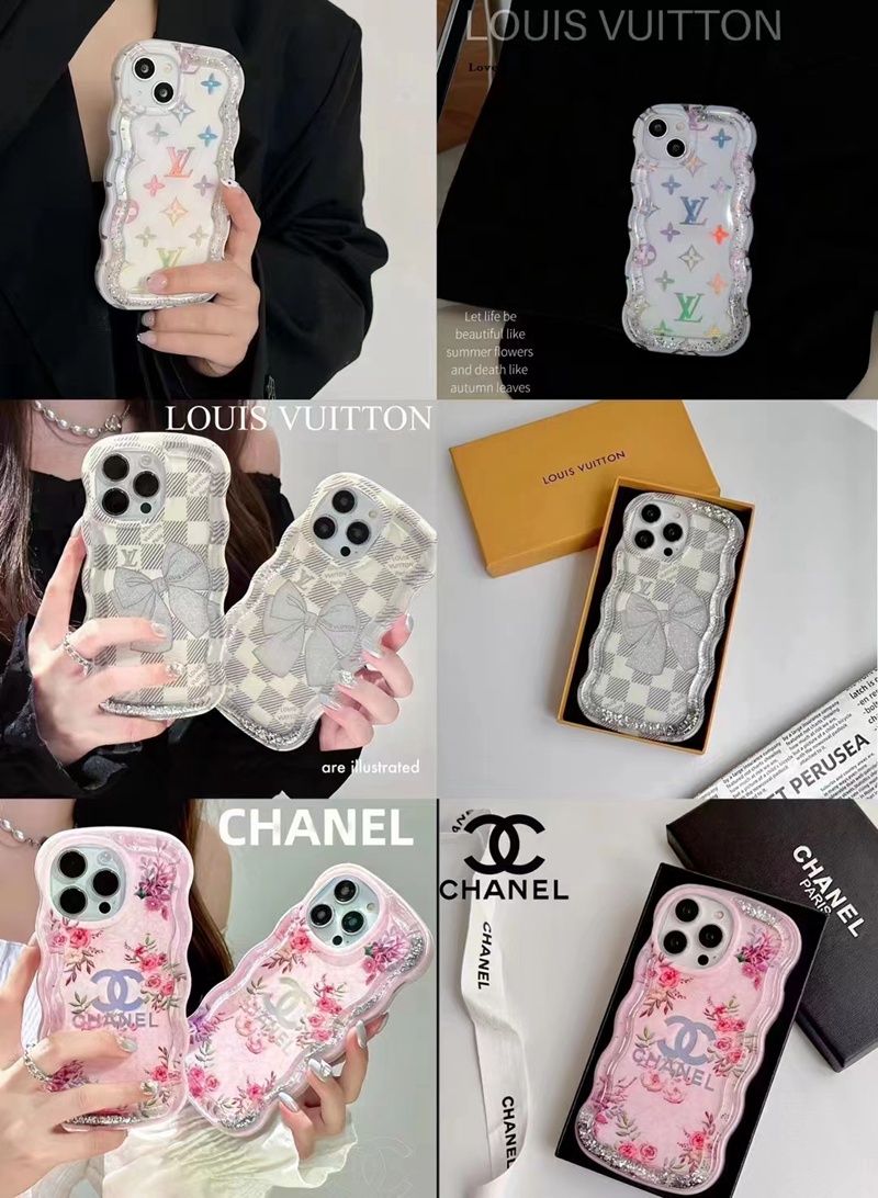 Chanel Louis Vuitton luxury clear flow shine monogram flower bowknot color cute case For iphone 14 Pro Max 13 12 11 cover